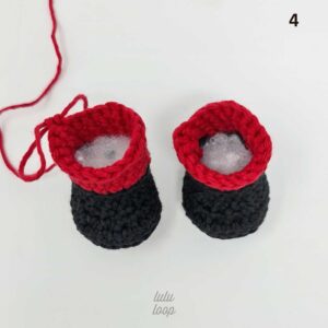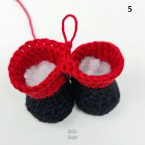 En la 2da pierna tejer 2 cad y une la 1era pierna, asegurándose de alinear que ambos pies queden en el mismo lado.